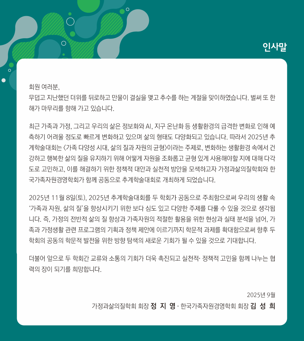 가정과삶의질학회에서는 한국가족자원경영학회와 함께