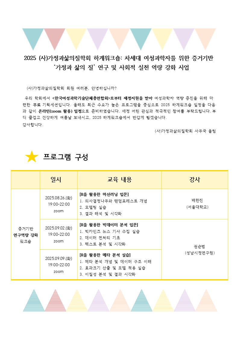 * 신청하신 분들께는 구체적인 프로그램 구성과 준비사항을 안내하는 메일을 워크숍 2일 전에 보내드립니다.
