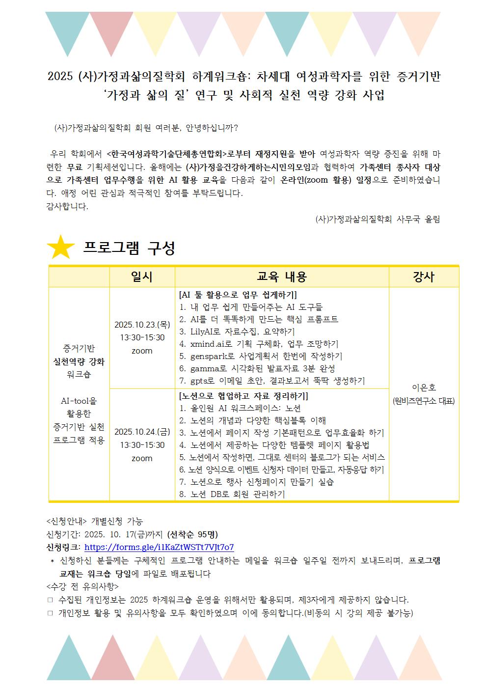 신청기간: 2025. 10. 17(금)까지 (선착순 95명)